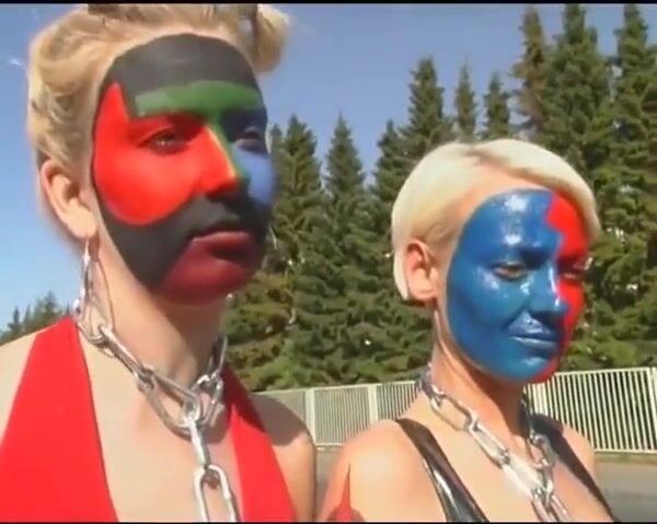 The two doms publicly show off their female slaves.