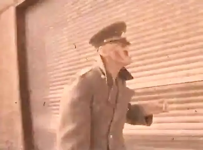 He drags the blond creature from the street into his basement where she has to suck the uniformed soldier's cock stiff and then he fucks the blond bitch really hard.