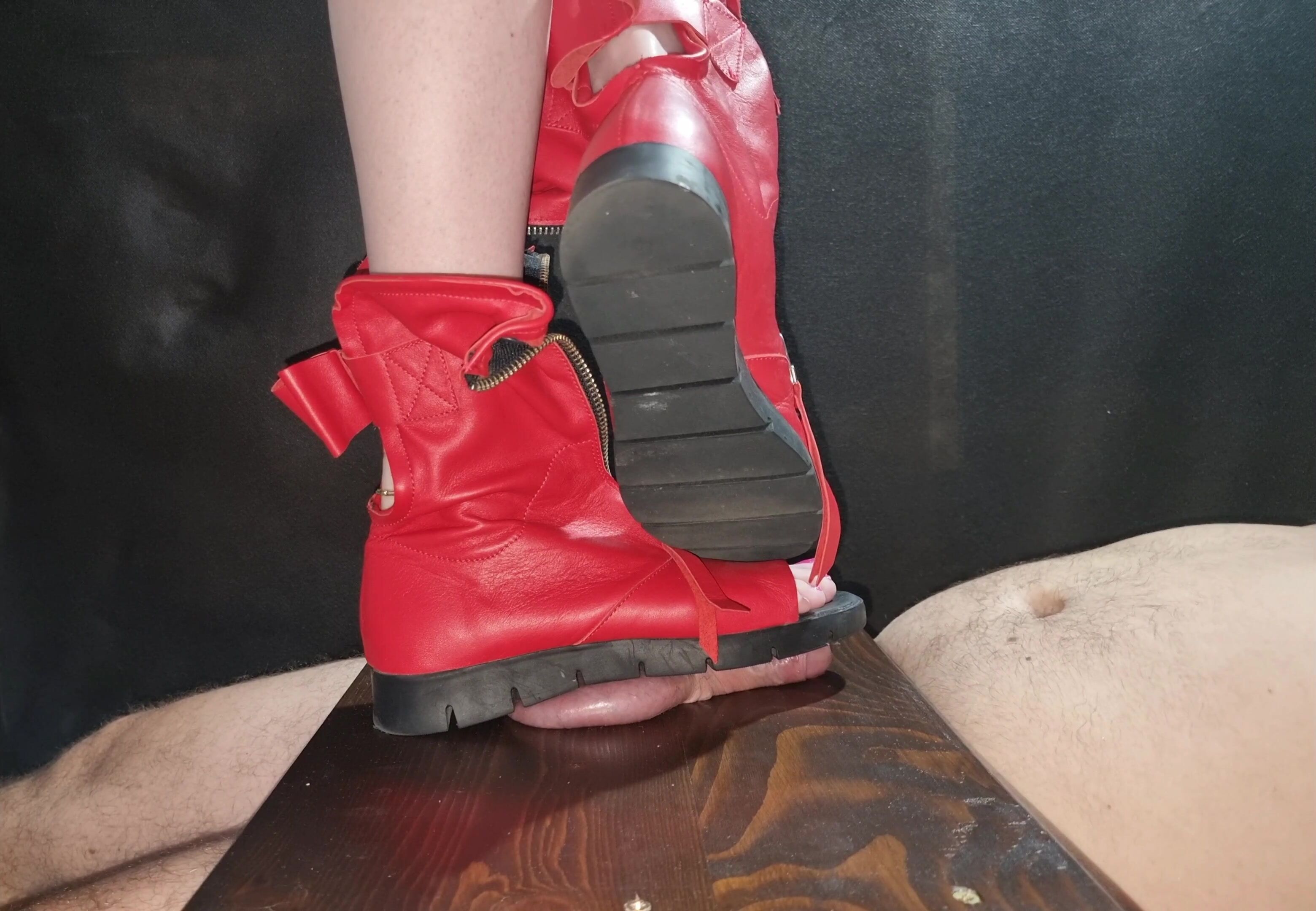 Testicle puree Mashed balls - Ball Crushing Ball Standing with Red sandals that have strong soles