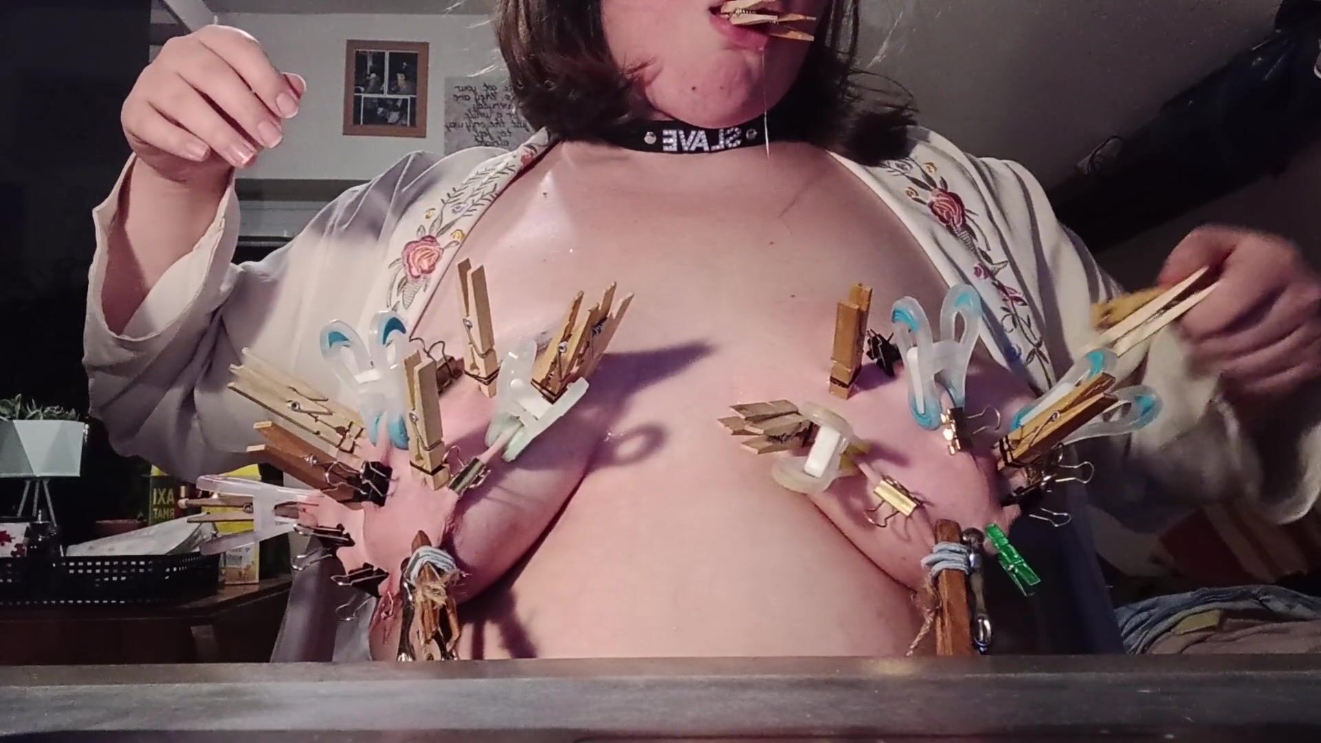 As we all loved to see my tits covered in clamps, I thought I would share my latest attempt at this fun little challenge - with, of course, a few more clamps and some drool all over my abused tits!