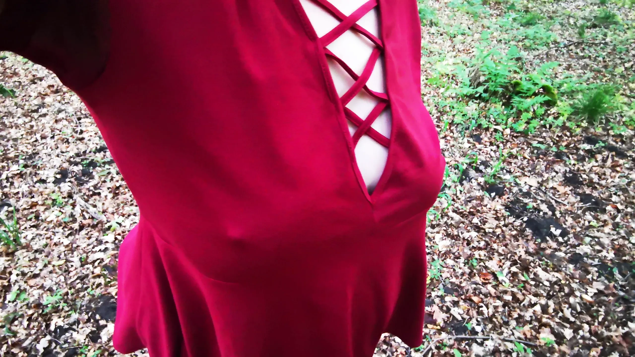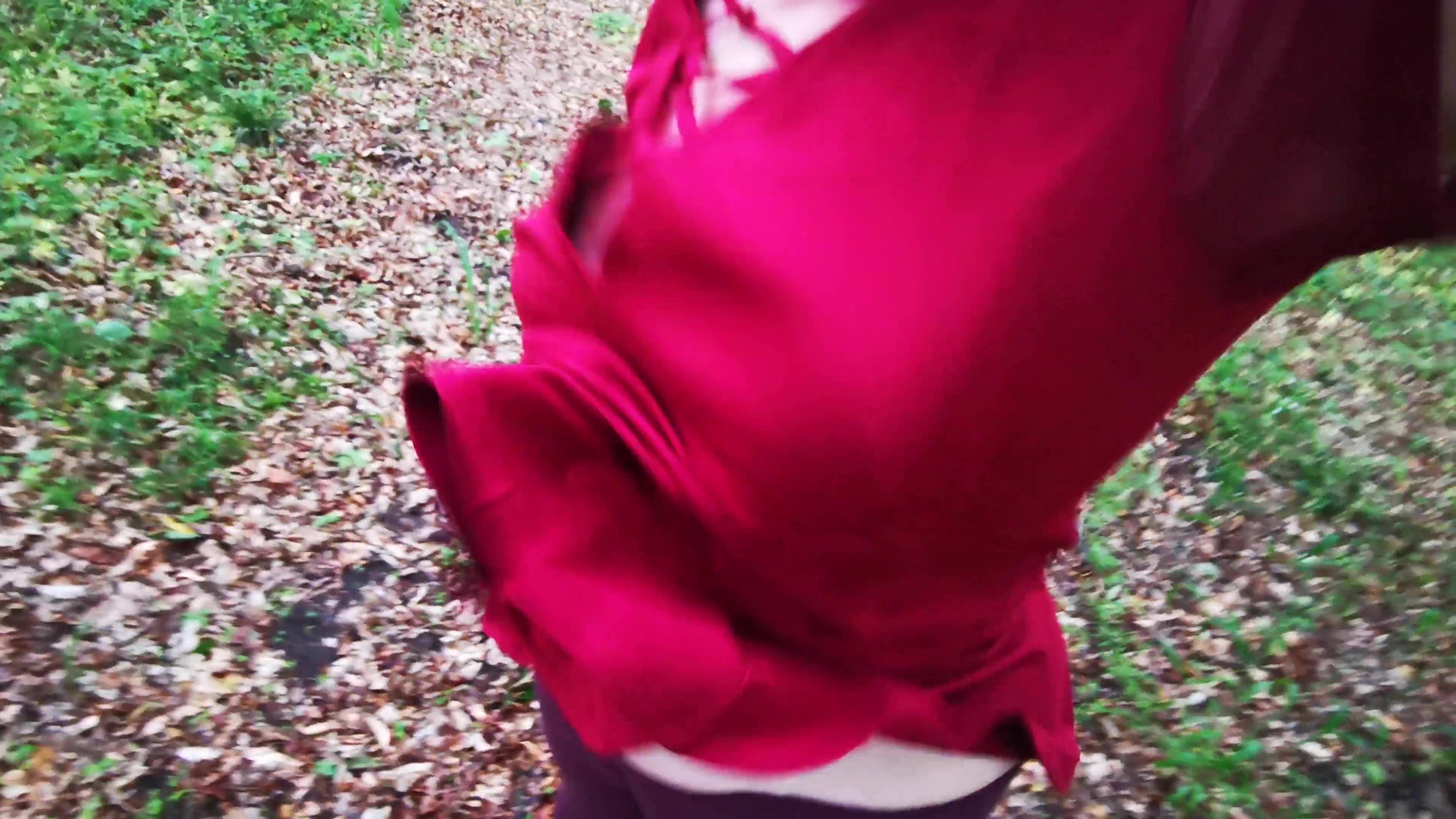 Punishing her breasts in the woods