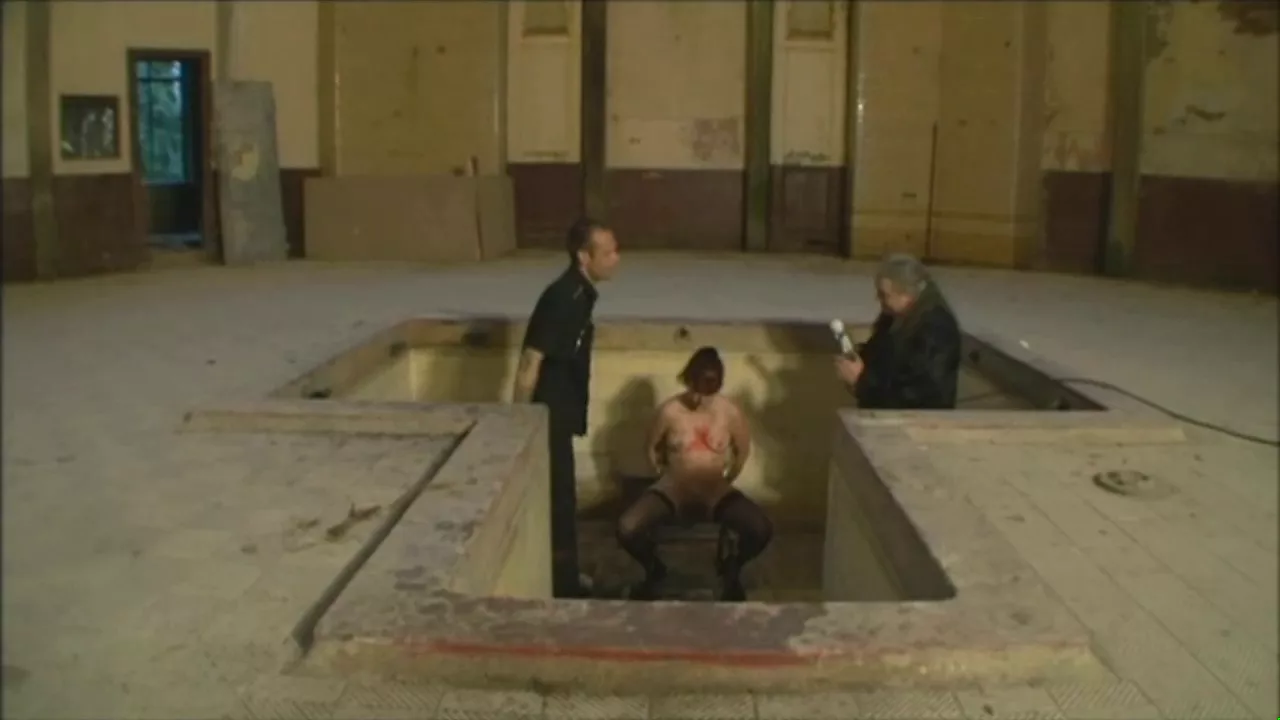 Dominant sado couple torments their poor slave girl on the rack.