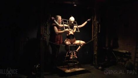 Dominant sado couple torments their poor slave girl on the rack.
