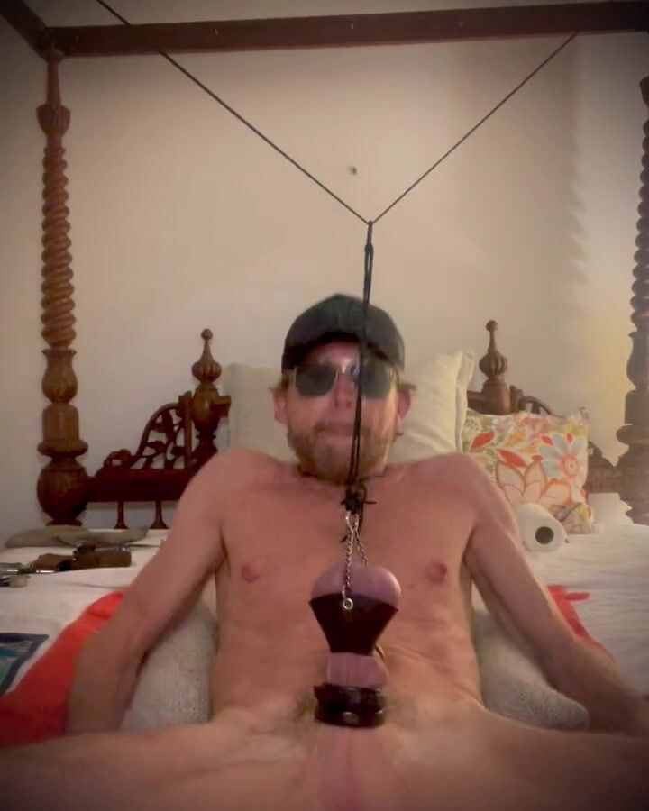 Watch this lean lad give himself a good workout when he attached a parachute ball stretcher and hoists his nuts high and long. He then takes his tit clamps to the same to his fat pumped nips and gives them a similar treatment. It's all about stretching his assets as far as he can push them...oink oink