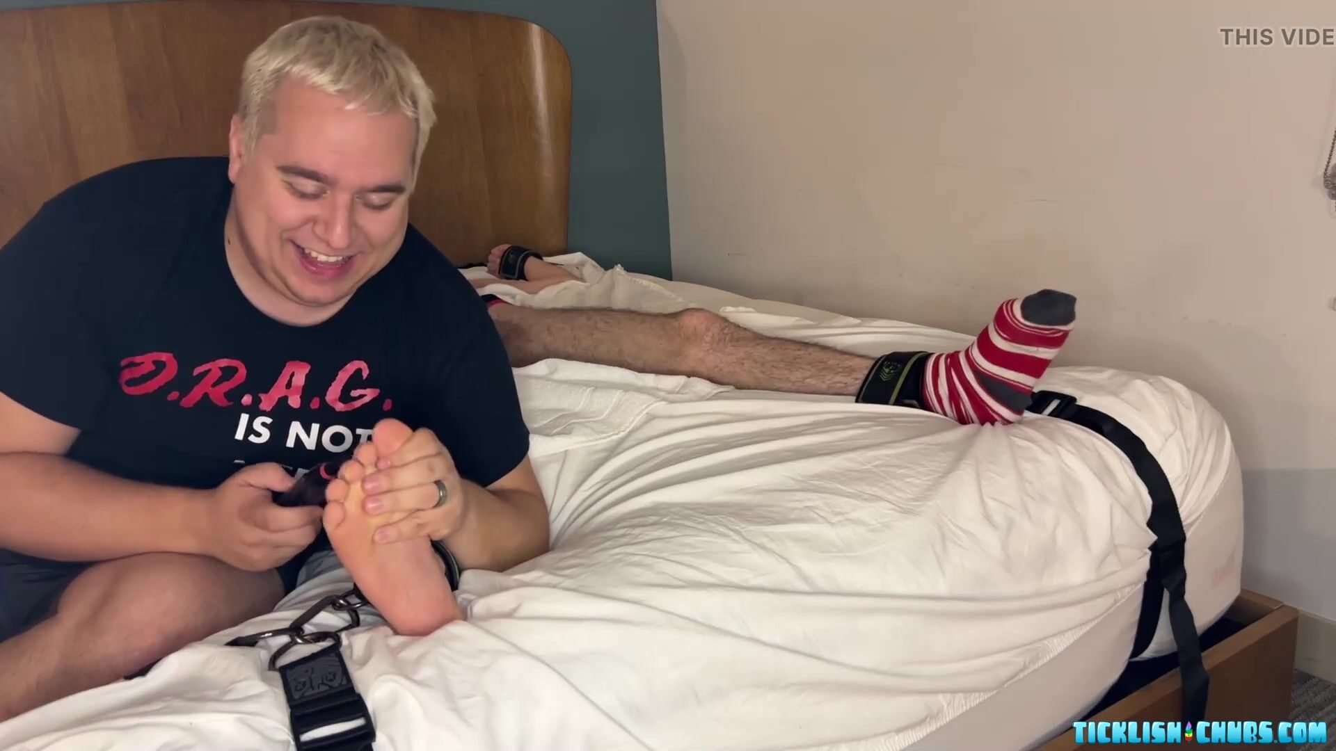 Strapped twink Spiritmonkey receives tickles from Matt