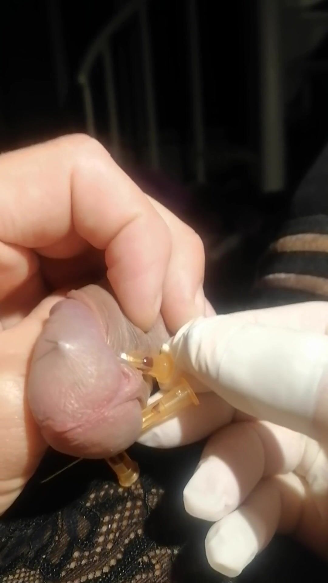 Thinner and thicker needles into my glans