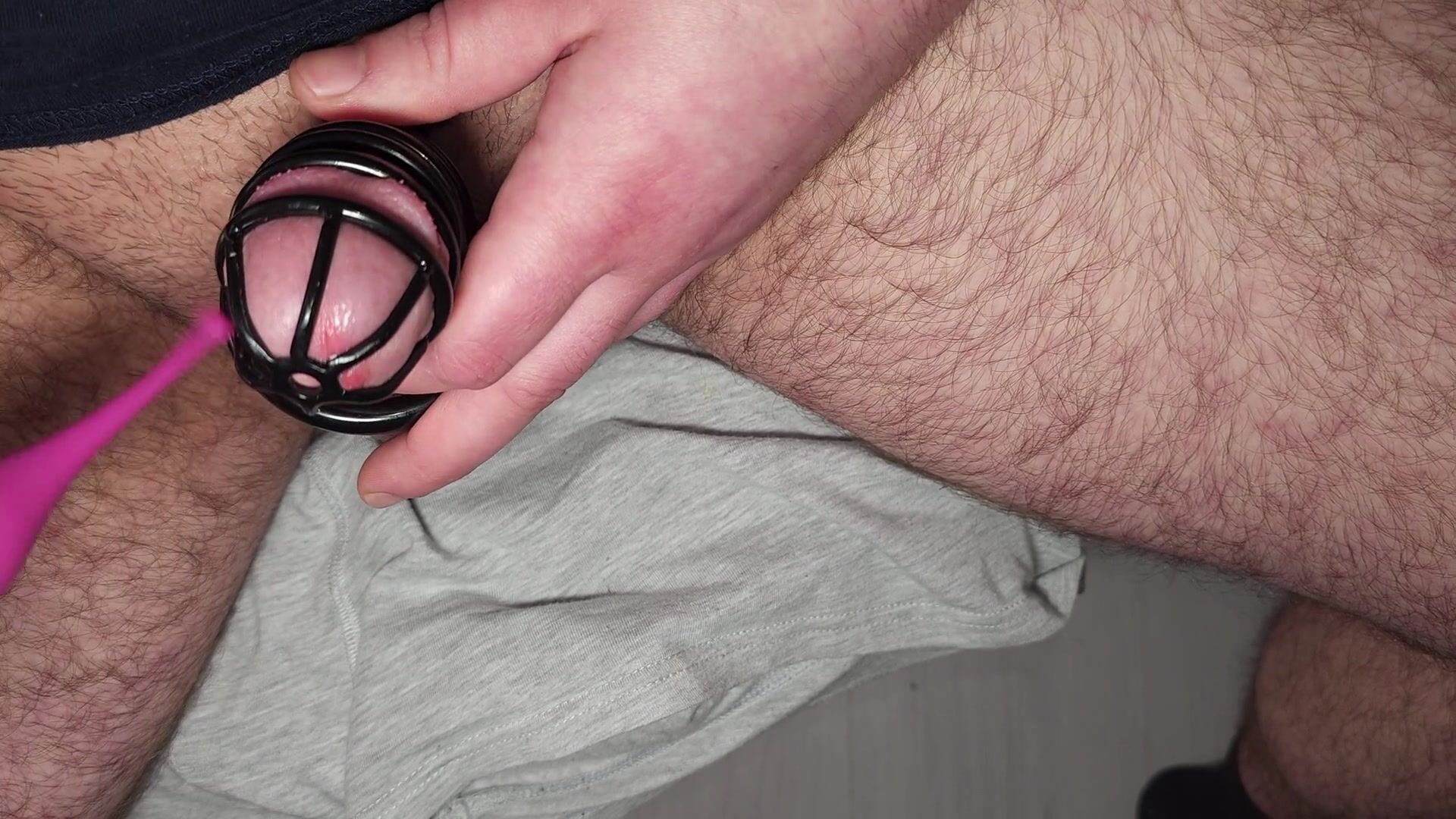 Caged, released. Milked and denied. Husband Cums.