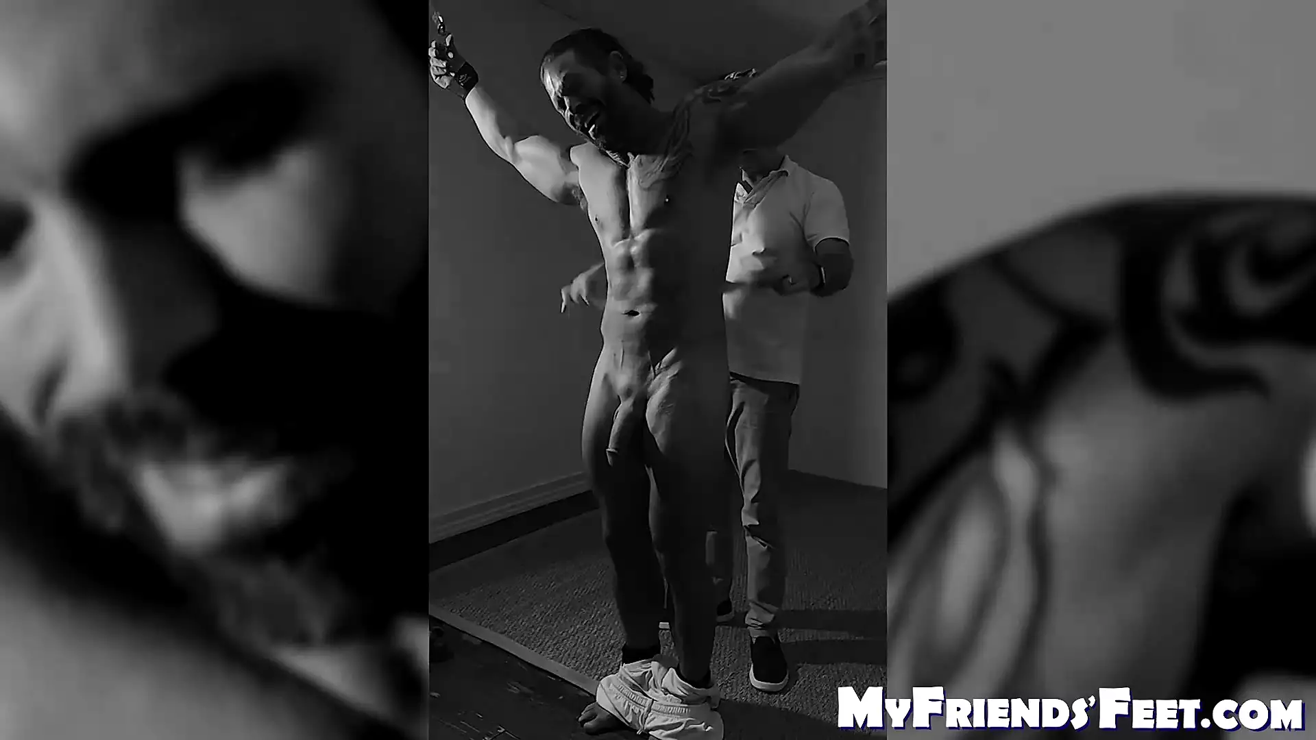 Ripped hunk Joey laughs while dom tickle torments him