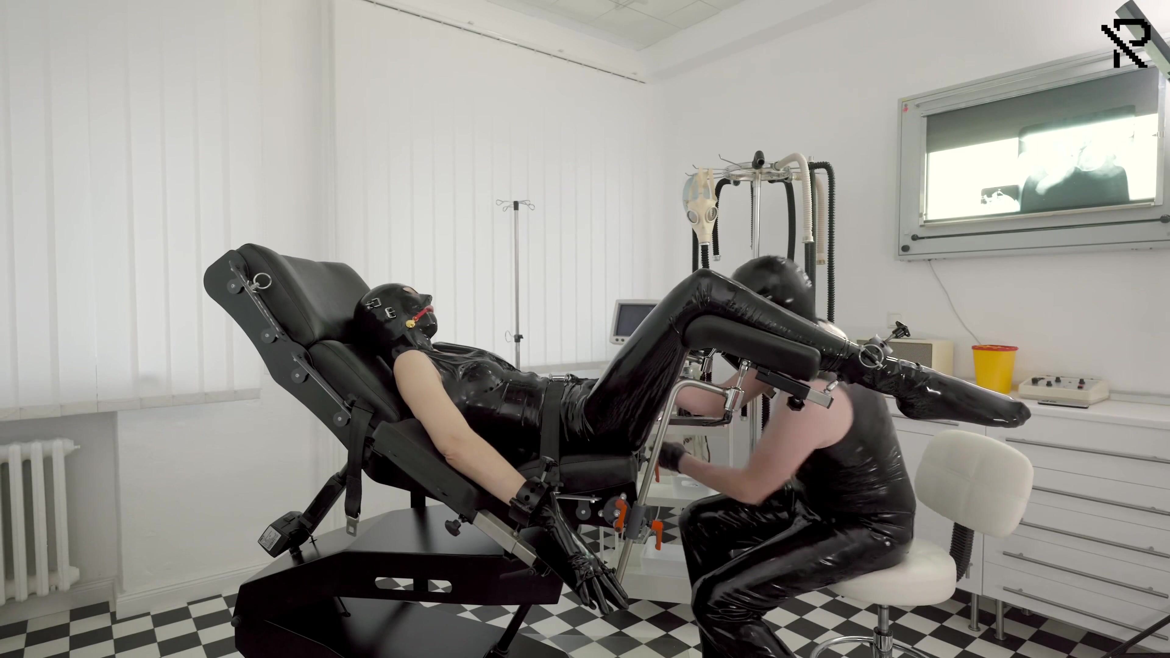 The slave girl is waiting for a special doctors treatment. Wearing a black latex catsuit and the Gagless Gag, she is bound strictly to this special gynchair. Slowly the doctors examination starts to become an intensive fisting session.