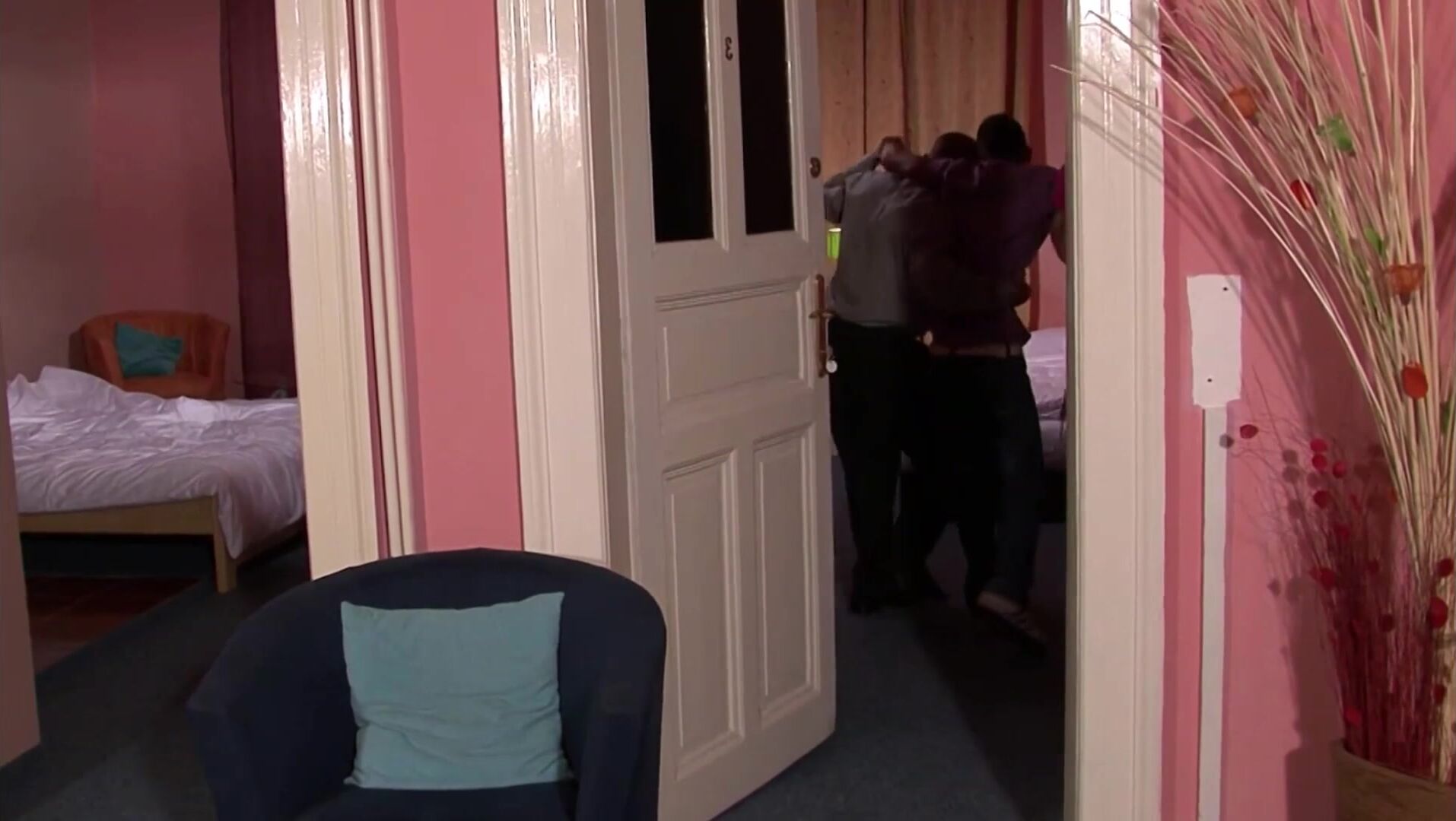 Attractive Redhead babe tied up and spanked by two guys